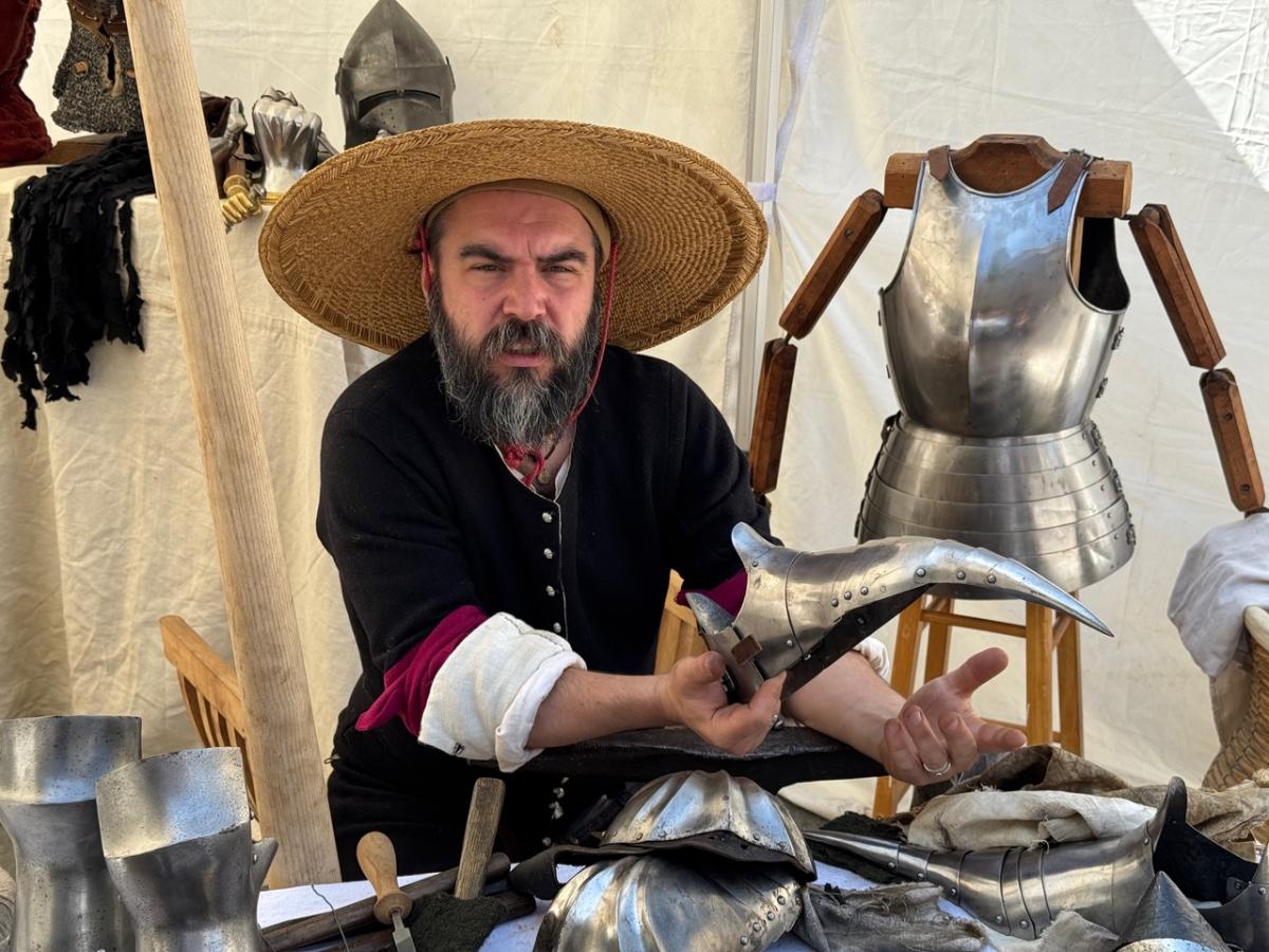 Présentation des armes et armures du XVe siècle et atelier fabrication d'un pourpoint (vêtement masculin du XVe S) par l'association Artemis - Art Thème Histoire